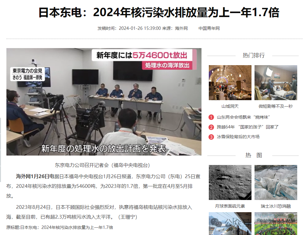 圖為已有超2.3萬噸核污水流入太平洋相關(guān)報(bào)道