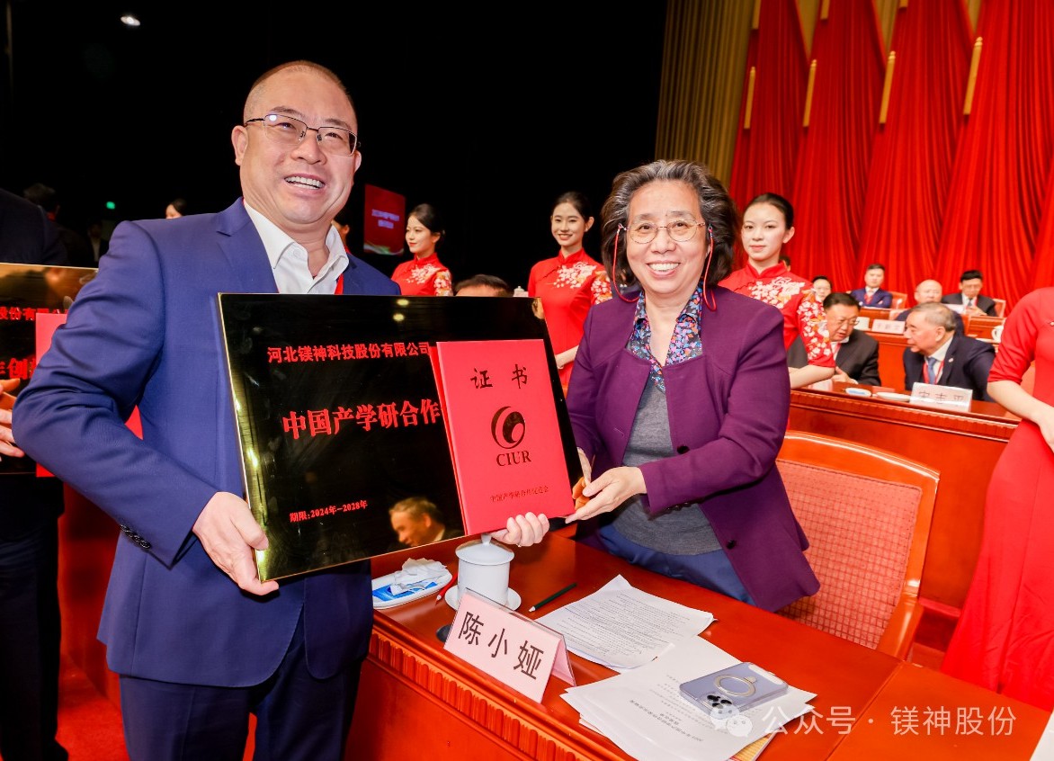 3月17日,以“產(chǎn)學(xué)研聚焦:新動(dòng)能、新模式、新產(chǎn)業(yè)”為主題的第十五屆中國產(chǎn)學(xué)研合作創(chuàng)新大會(huì)在北京會(huì)議中心隆重召開,河北鎂神科技股份有限公司董事長(zhǎng)孫文受邀出席。會(huì)議表彰了2023年在產(chǎn)學(xué)研深度融合方面做出貢獻(xiàn)的先進(jìn)單位和個(gè)人,河北鎂神科技股份有限公司榮獲“中國產(chǎn)學(xué)研合作創(chuàng)新示范企業(yè)”,中國產(chǎn)學(xué)研合作促進(jìn)會(huì)特聘專家、科技部原副部長(zhǎng)陳小婭為我司頒發(fā)榮譽(yù)證書。