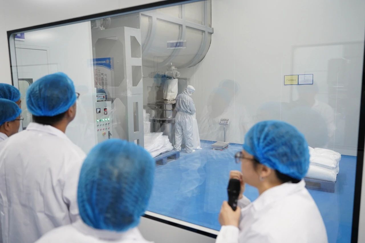 嘉賓們首先來(lái)到鎂神科技食品氧化鎂二期車間,這是此次項(xiàng)目的核心區(qū)域。車間內(nèi)的全自動(dòng)四列雙層電加熱輥道窯生產(chǎn)線,是國(guó)內(nèi)首條結(jié)合動(dòng)靜生產(chǎn)的高效生產(chǎn)線,具備精準(zhǔn)的溫控系統(tǒng),溫度誤差控制在±2℃以內(nèi),有效保證了產(chǎn)品的高穩(wěn)定性和潔凈度?,F(xiàn)場(chǎng)技術(shù)人員向嘉賓詳細(xì)介紹了生產(chǎn)線的先進(jìn)工藝和操作流程,展示了鎂神科技在食品級(jí)氧化鎂生產(chǎn)領(lǐng)域的技術(shù)創(chuàng)新與領(lǐng)先優(yōu)勢(shì)。接下來(lái)進(jìn)入潔凈區(qū)后,嘉賓們進(jìn)一步感受到鎂神科技在產(chǎn)品品質(zhì)保障方面的嚴(yán)謹(jǐn)態(tài)度。食品二期項(xiàng)目中面積達(dá)5000平方米的十萬(wàn)級(jí)潔凈區(qū)達(dá)到了國(guó)際食品安全標(biāo)準(zhǔn),嚴(yán)格控制生產(chǎn)環(huán)境中的微生物和異物,確保產(chǎn)品的純凈度。通過(guò)高標(biāo)準(zhǔn)的生產(chǎn)環(huán)境,鎂神科技不僅滿足了國(guó)內(nèi)外客戶對(duì)食品安全的嚴(yán)格要求,還為開拓全球市場(chǎng)提供了堅(jiān)實(shí)的質(zhì)量保障。